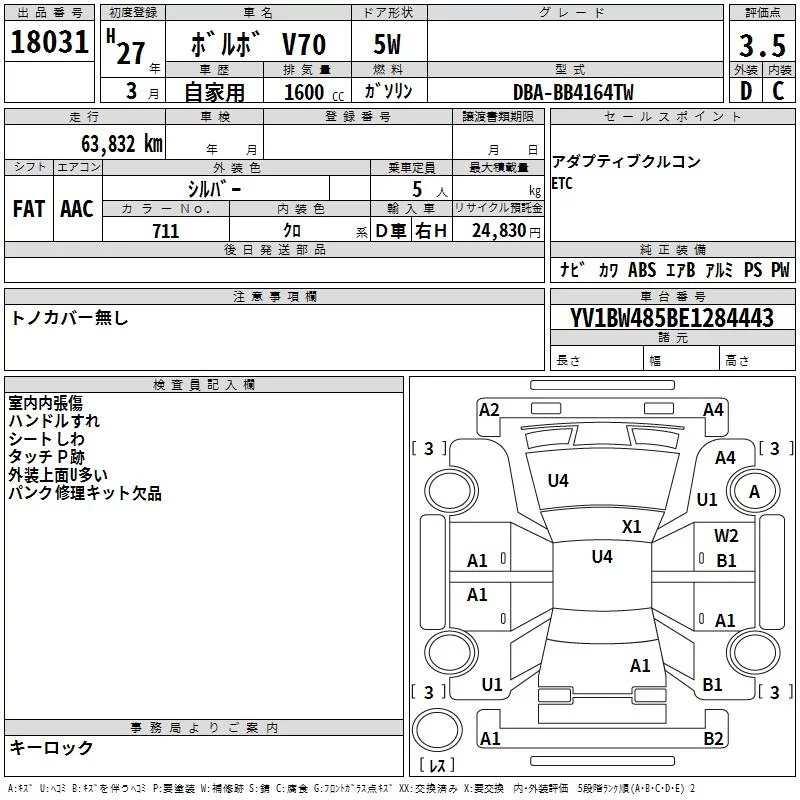 Volvo V70 с аукциона Японии TAA Yokohama лот № 18031