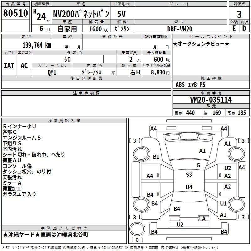 Nissan NV200 с аукциона Японии TAA Yokohama лот № 80510