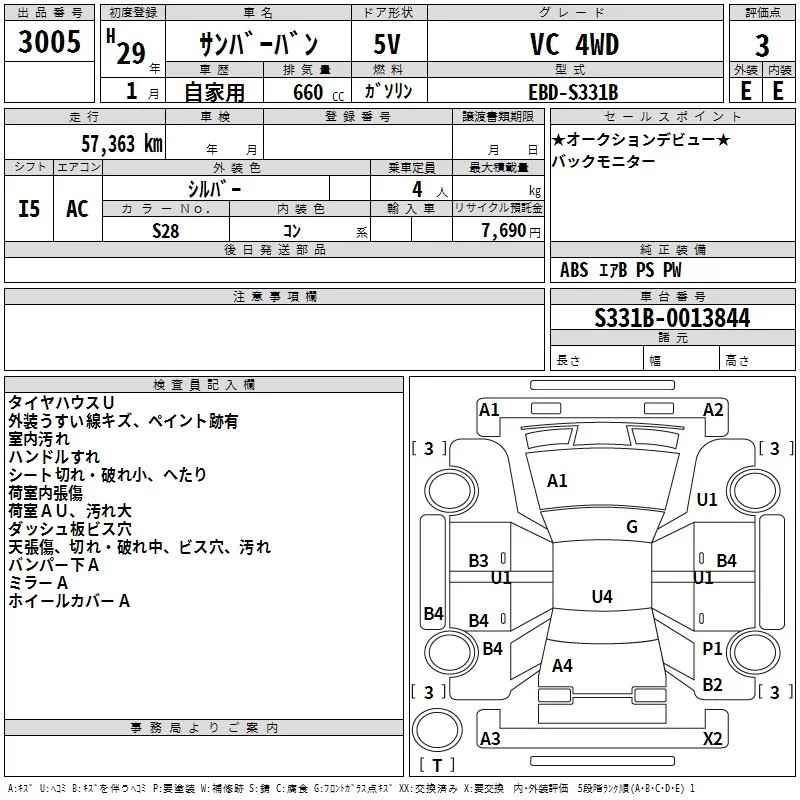 Subaru SAMBAR с аукциона Японии TAA Yokohama лот № 3005