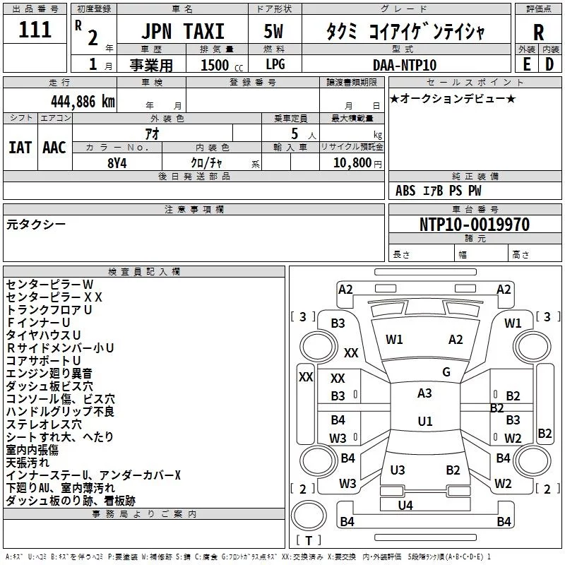 Toyota JPN TAXI с аукциона Японии TAA Yokohama лот № 111