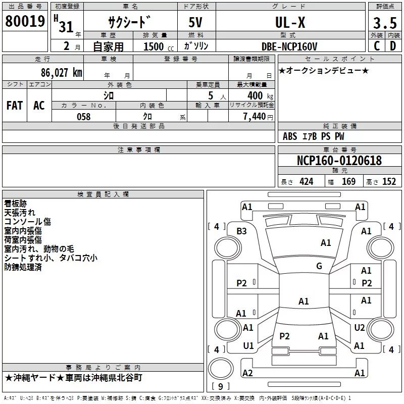 Toyota SUCCEED с аукциона Японии TAA Yokohama лот № 80019
