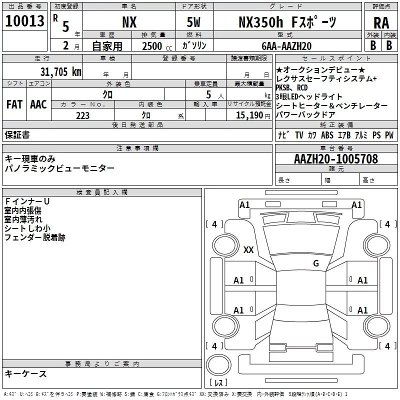 Lexus NX с аукциона Японии TAA Yokohama лот № 10013