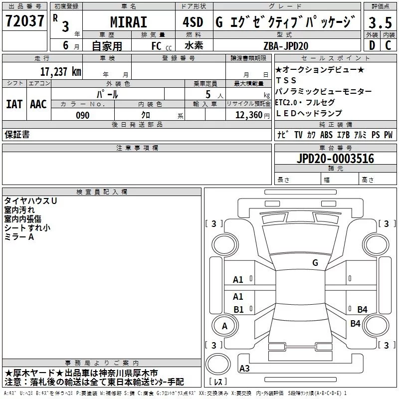 Toyota MIRAI с аукциона Японии TAA Yokohama лот № 72037