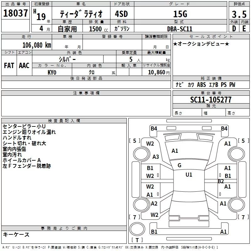Nissan TIIDA LATIO с аукциона Японии TAA Yokohama лот № 18037