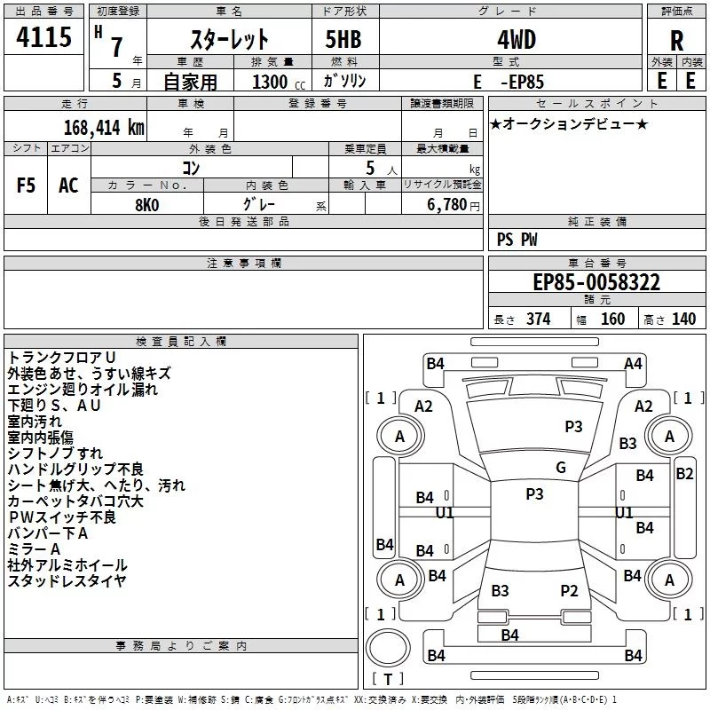 Toyota STARLET с аукциона Японии TAA Yokohama лот № 4115