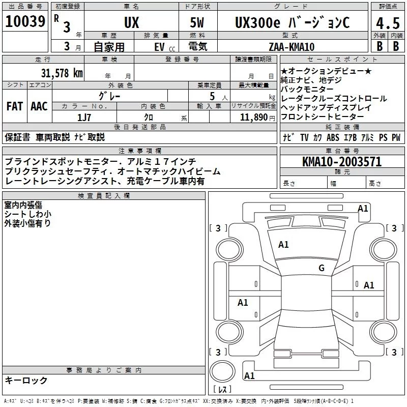 Lexus UX с аукциона Японии TAA Yokohama лот № 10039