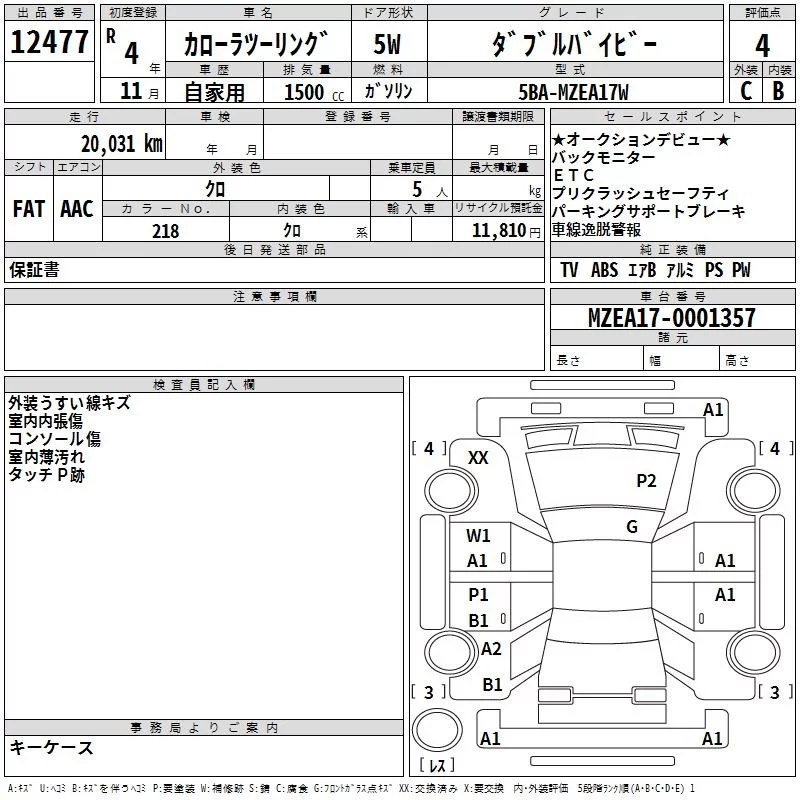 Toyota COROLLA TOURING с аукциона Японии TAA Yokohama лот № 12477