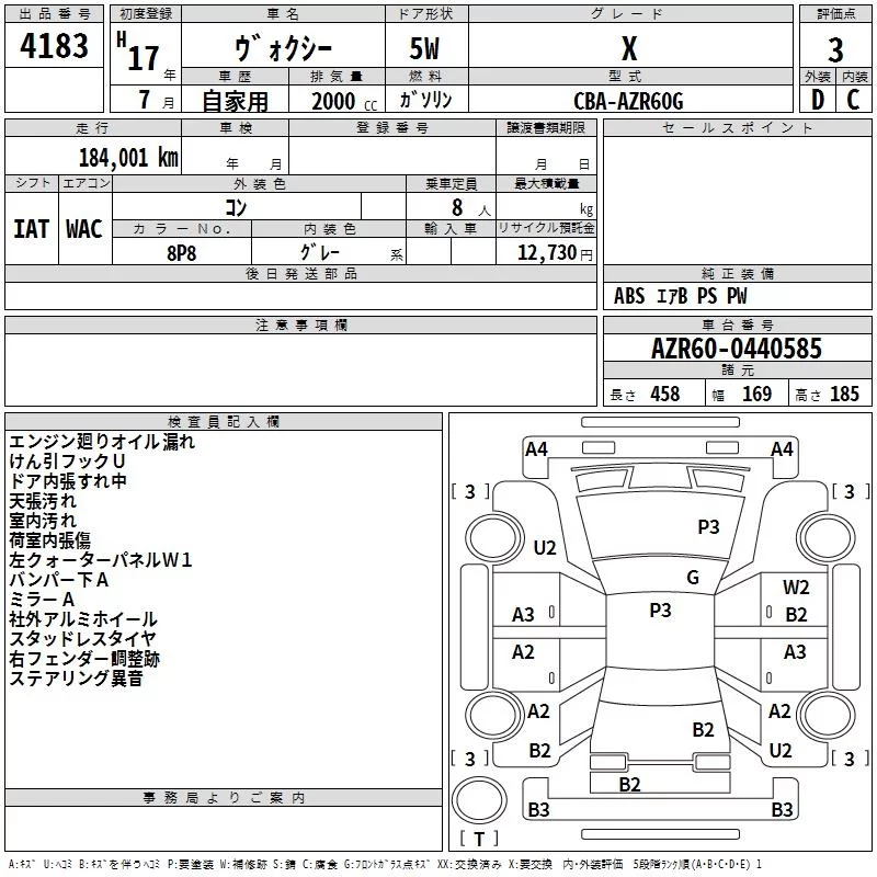 Toyota VOXY с аукциона Японии TAA Yokohama лот № 4183
