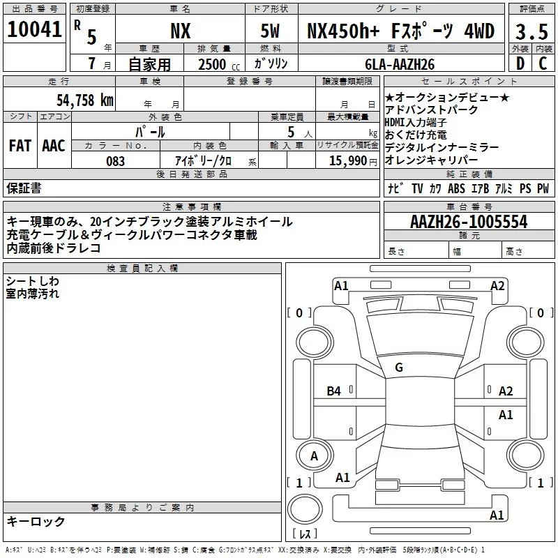 Lexus NX с аукциона Японии TAA Yokohama лот № 10041