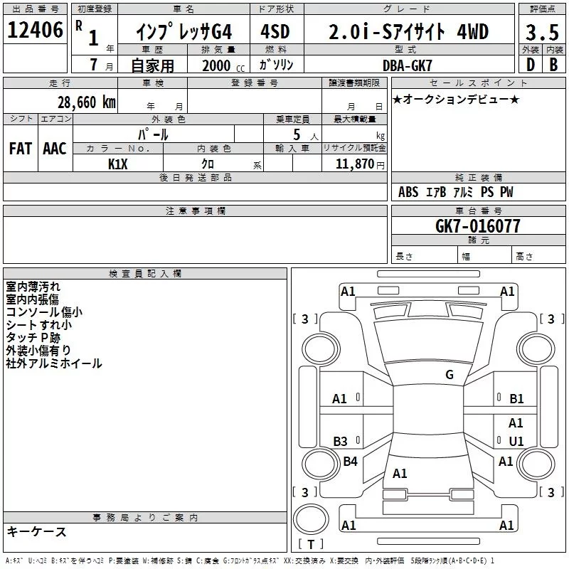 Subaru IMPREZA G4 с аукциона Японии TAA Yokohama лот № 12406