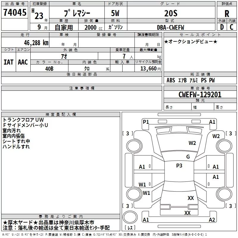 Mazda PREMACY с аукциона Японии TAA Yokohama лот № 74045