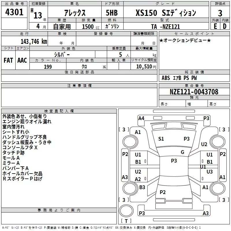 Toyota ALLEX с аукциона Японии TAA Yokohama лот № 4301
