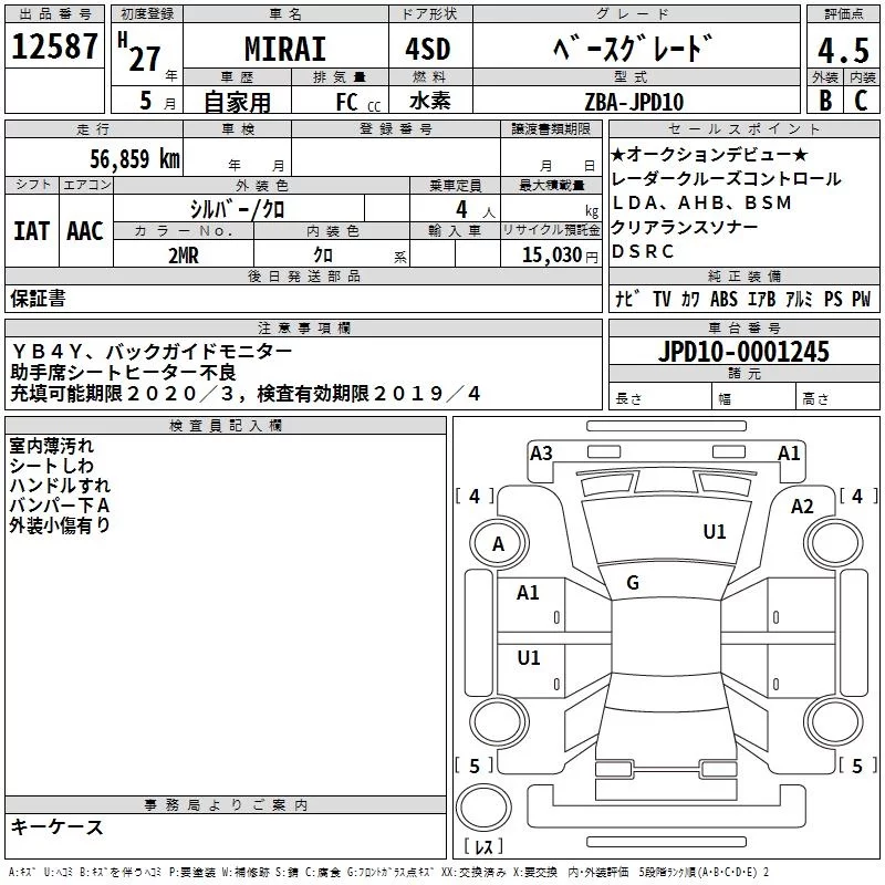 Toyota MIRAI с аукциона Японии TAA Yokohama лот № 12587