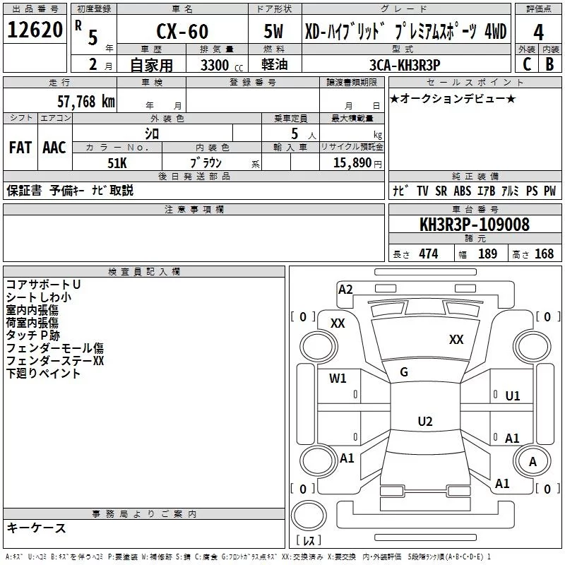 Mazda CX-60 с аукциона Японии TAA Yokohama лот № 12620