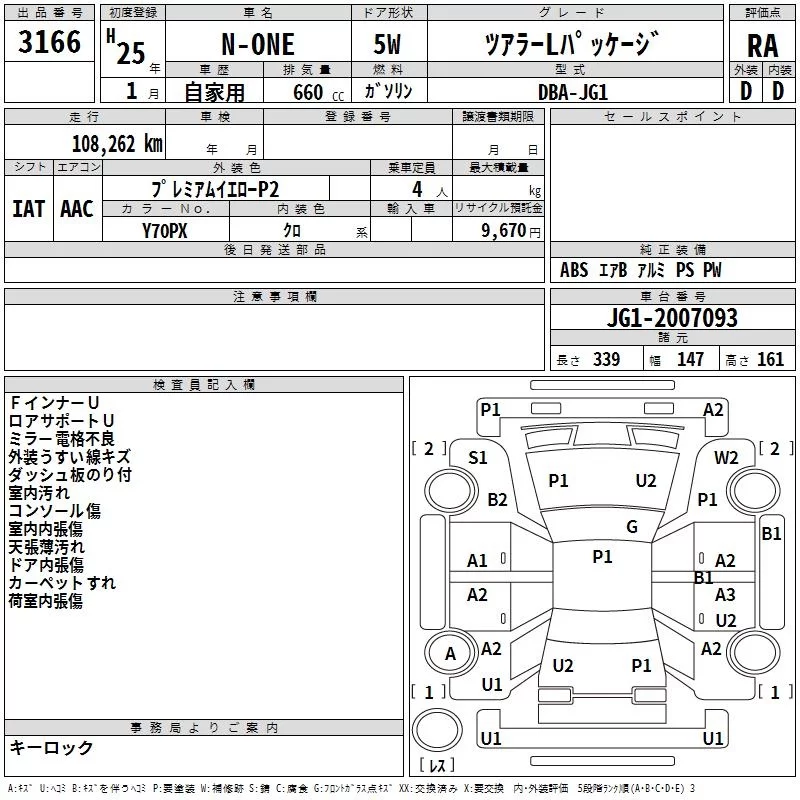 Honda N ONE с аукциона Японии TAA Yokohama лот № 3166