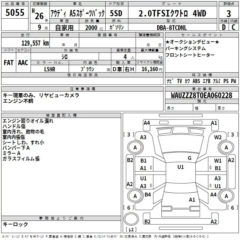 Audi A5 с аукциона Японии TAA Yokohama лот № 5055