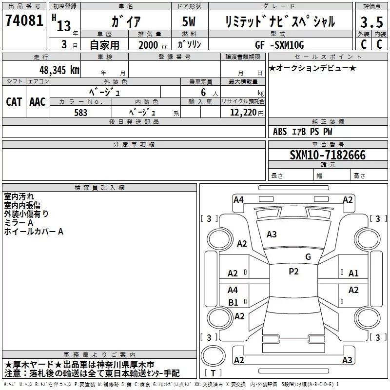 Toyota GAIA с аукциона Японии TAA Yokohama лот № 74081