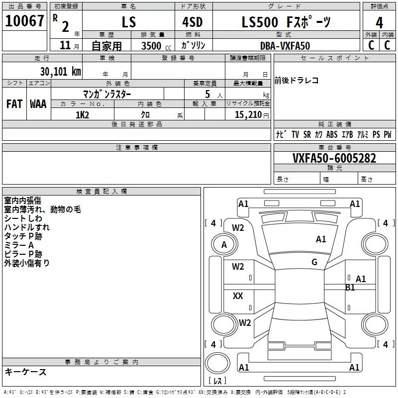 Lexus LS с аукциона Японии TAA Yokohama лот № 10067