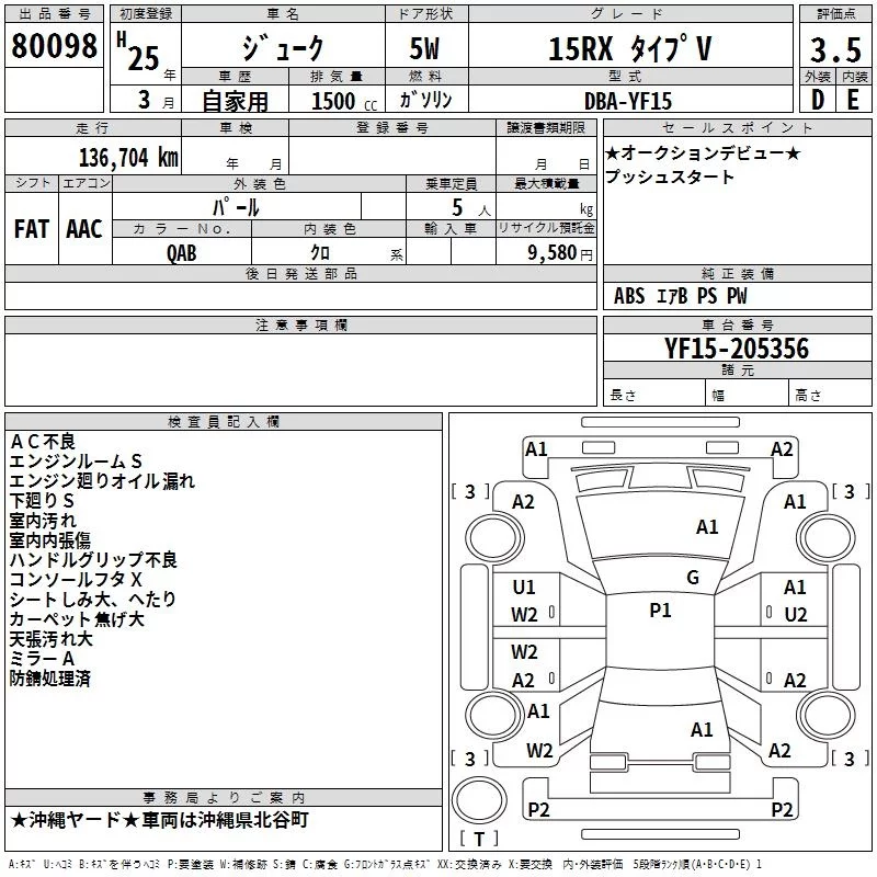 Nissan JUKE с аукциона Японии TAA Yokohama лот № 80098