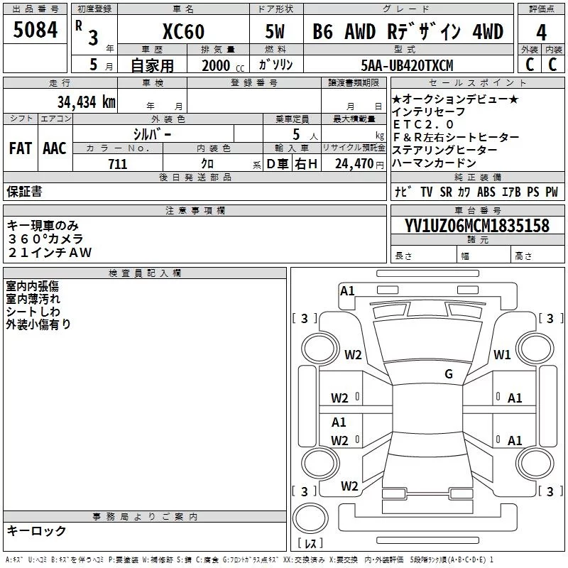Volvo XC60 с аукциона Японии TAA Yokohama лот № 5084