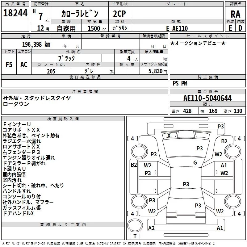 Toyota COROLLA LEVIN с аукциона Японии TAA Yokohama лот № 18244