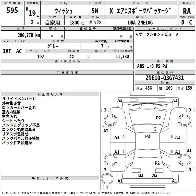 Toyota WISH с аукциона Японии TAA Yokohama лот № 595
