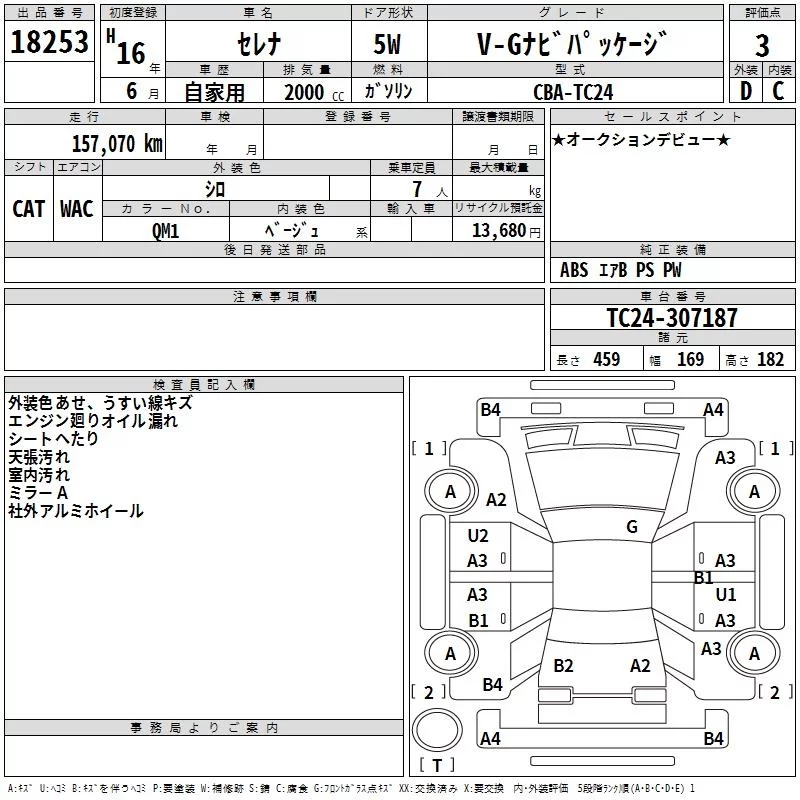 Nissan SERENA с аукциона Японии TAA Yokohama лот № 18253