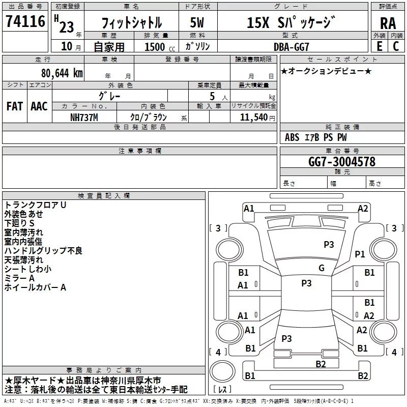 Honda FIT SHUTTLE с аукциона Японии TAA Yokohama лот № 74116