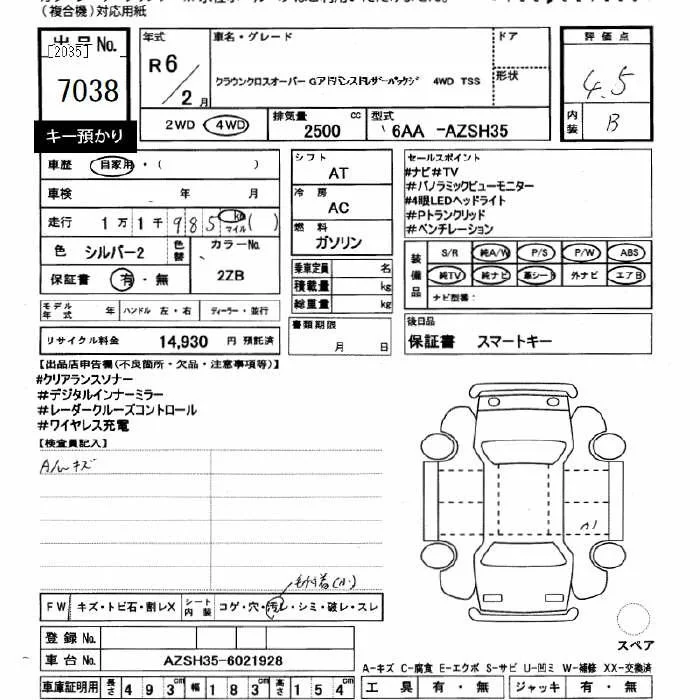 Toyota CROWN CROSSOVER с аукциона Японии JU Gifu лот № 7038