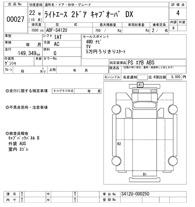 Toyota LITE ACE TRUCK с аукциона Японии ARAI Oyama VT лот № 27