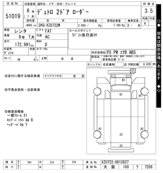Hino DUTRO с аукциона Японии ARAI Oyama VT лот № 51019