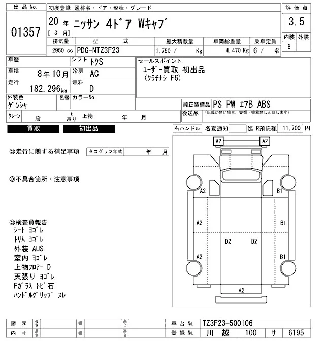 Nissan TRUCK с аукциона Японии ARAI Oyama VT лот № 1357