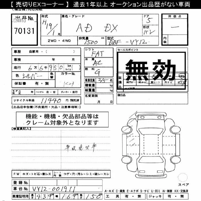 Nissan AD с аукциона Японии JU Gifu лот № 70131