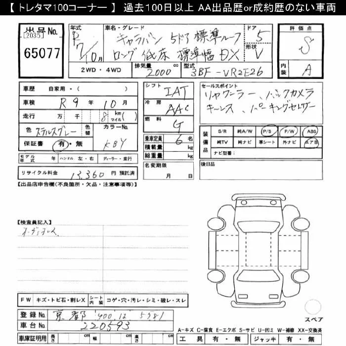 Nissan CARAVAN VAN с аукциона Японии JU Gifu лот № 65077