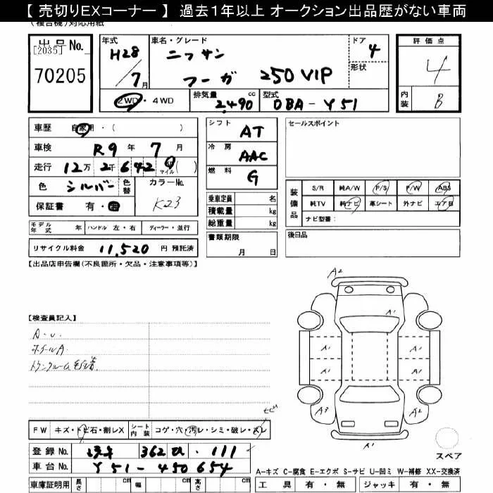 Nissan FUGA с аукциона Японии JU Gifu лот № 70205
