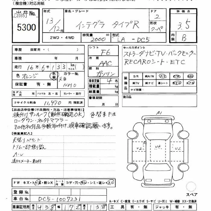 Honda INTEGRA с аукциона Японии JU Gifu лот № 5300