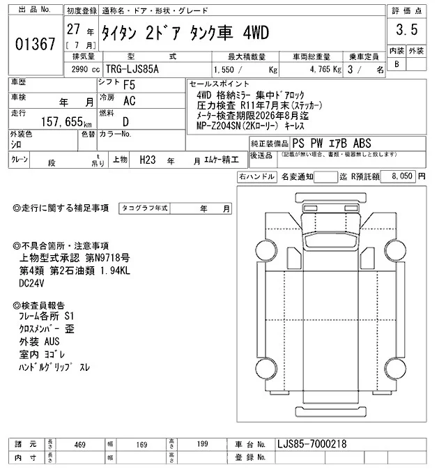Mazda TITAN с аукциона Японии ARAI Oyama VT лот № 1367