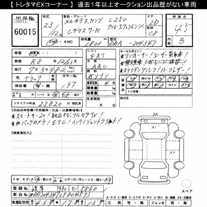 Mercedes-Benz C CLASS с аукциона Японии JU Gifu лот № 60015
