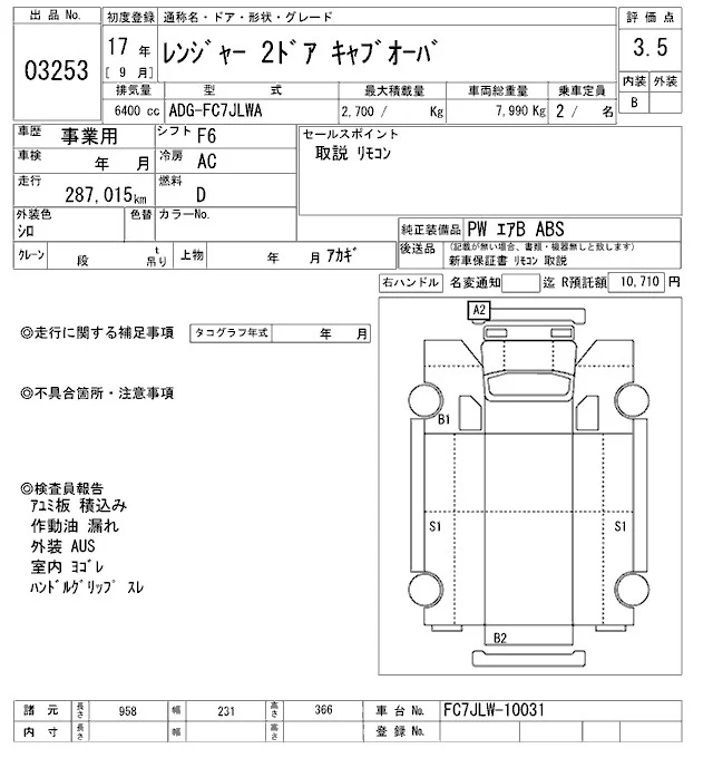Hino RANGER с аукциона Японии ARAI Oyama VT лот № 3253