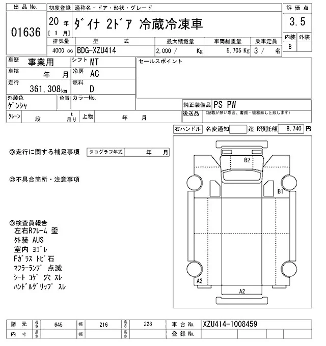Toyota DYNA с аукциона Японии ARAI Oyama VT лот № 1636