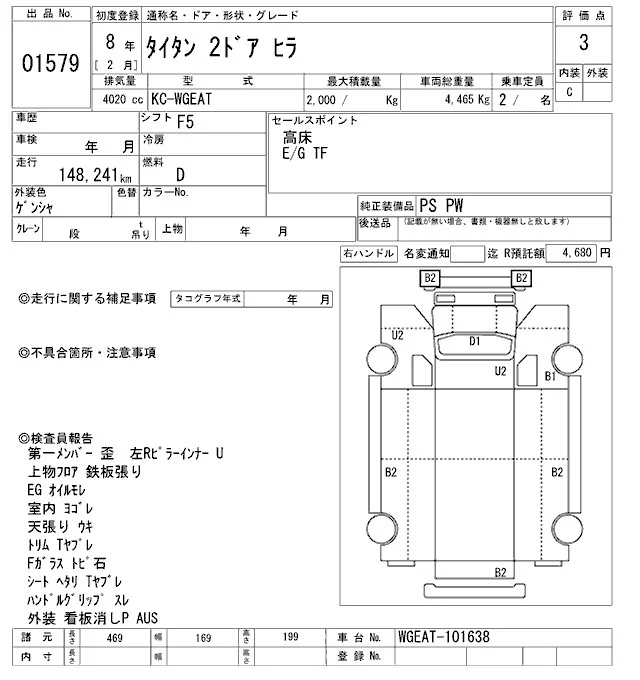 Mazda TITAN с аукциона Японии ARAI Oyama VT лот № 1579