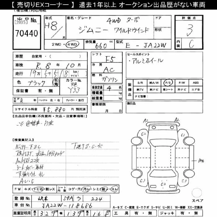Suzuki JIMNY с аукциона Японии JU Gifu лот № 70440
