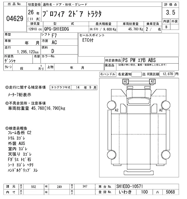 Hino PROFIA с аукциона Японии ARAI Oyama VT лот № 4629