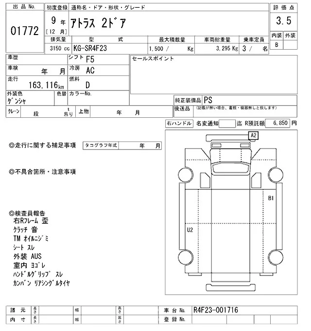 Nissan ATLAS с аукциона Японии ARAI Oyama VT лот № 1772