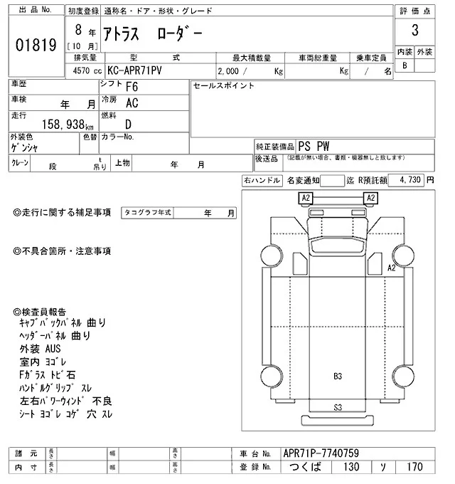 Nissan ATLAS с аукциона Японии ARAI Oyama VT лот № 1819