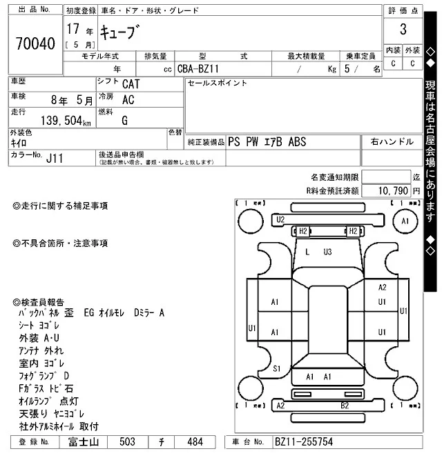 Nissan CUBE с аукциона Японии ARAI Oyama VT лот № 70040