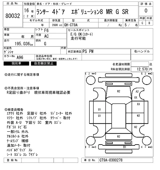 Mitsubishi LANCER с аукциона Японии ARAI Oyama VT лот № 80032