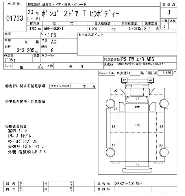 Mazda BONGO с аукциона Японии ARAI Oyama VT лот № 1733