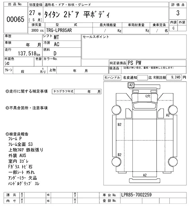 Mazda TITAN с аукциона Японии ARAI Oyama VT лот № 65