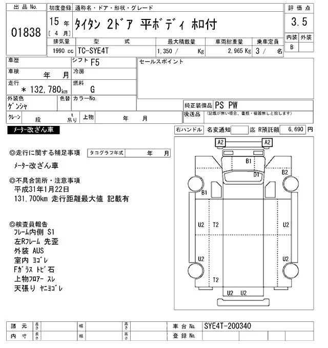 Mazda TITAN с аукциона Японии ARAI Oyama VT лот № 1838